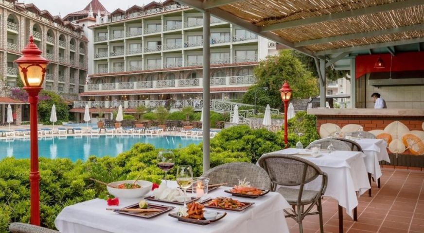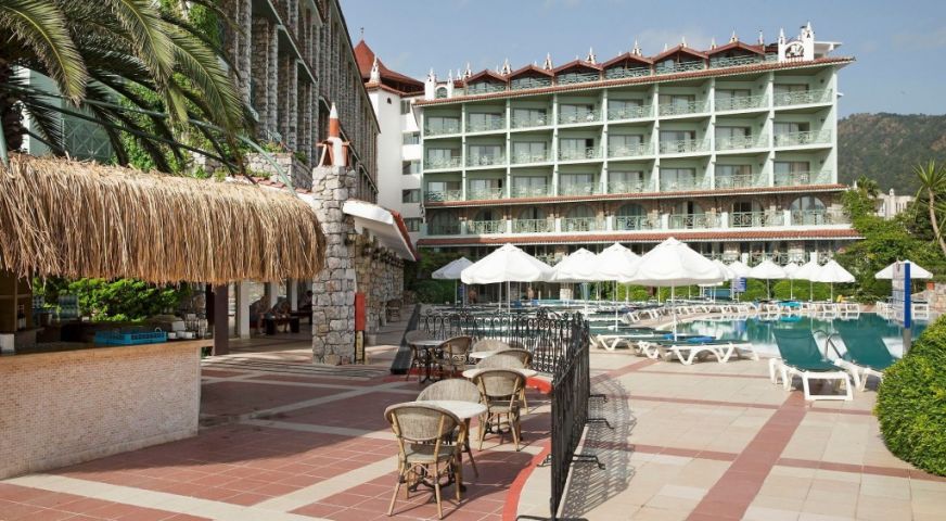 Хотелът се намира на 139 км. от летище Милас, на 103км от летище Даламан, на 8 км. от центъра на Мармарис, в района на Ичмелер, на брега на морето. Построен през 1988 г. с обща площ от 5 700 м2, последно реновиран през 2014 г. Хотел за възрастни - настаняване на деца под 16 години не е позволено.
