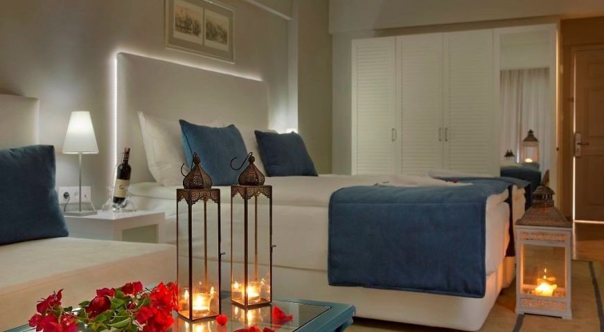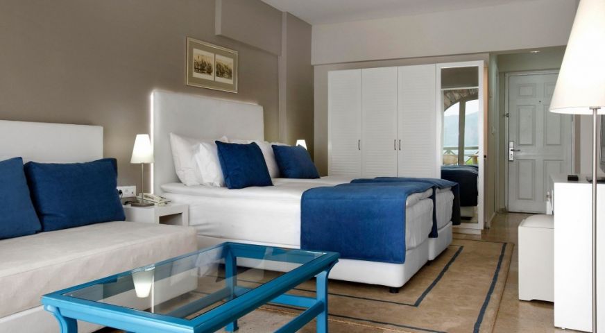 Хотелът разполага общо с 197 стаи, 66 Pine Tree-View Rooms (27м²), 116 SEA-VIEW ROOMS (27м²), 7 Deluxe Suite (43м²), 6 Family Room (45м²), 2 стаи за инвалиди (27м²). Всички стаи са оборудвани с климатик, телевизор, телефон, баня с душ/вана, сешоар, сет за чай/кафе, мини бар (платено), сейф (платено), балкон. Почистване на стаите - всеки ден, смяна на спалното бельо и кърпите - 3 пъти в седмицата.