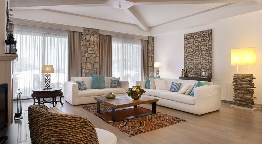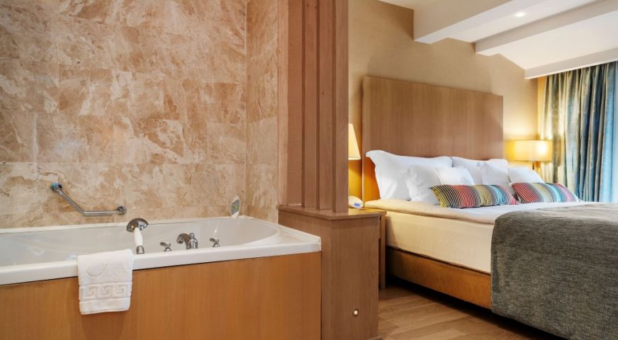 Хотелът разполага общо с 257 стаи (28-33 м²), разположени в четири различни блока, 11 апартамента (58-81 м²), 12 луксозни вили (51-160 м²) и 3 премиум апартамента. Стаите са с изглед към морето, басейна или градина. Всички стаи са оборудвани с климатик, телевизор,телефон, баня с душ/вана, сешоар, сет за чай/кафе, минибар (вода, безалкохолни напитки - зарежда се ежедневно, безплатно), сейф (безплатен), WI-FI интернет, балкон. Почистване на стаите - всеки ден, смяна на спалното бельо и кърпите - 3 пъти в седмицата.