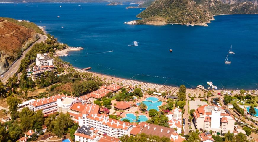 Хотелът се намира на 139 км. от летище Милас, на 103км от летище Даламан, на 8 км. от центъра на Мармарис, в района на Ичмелер, на брега на морето. Построен през 1969 г. с обща площ от 31 000 м2, последно реновиран през 2014 г.
