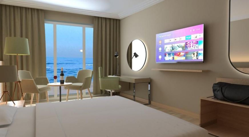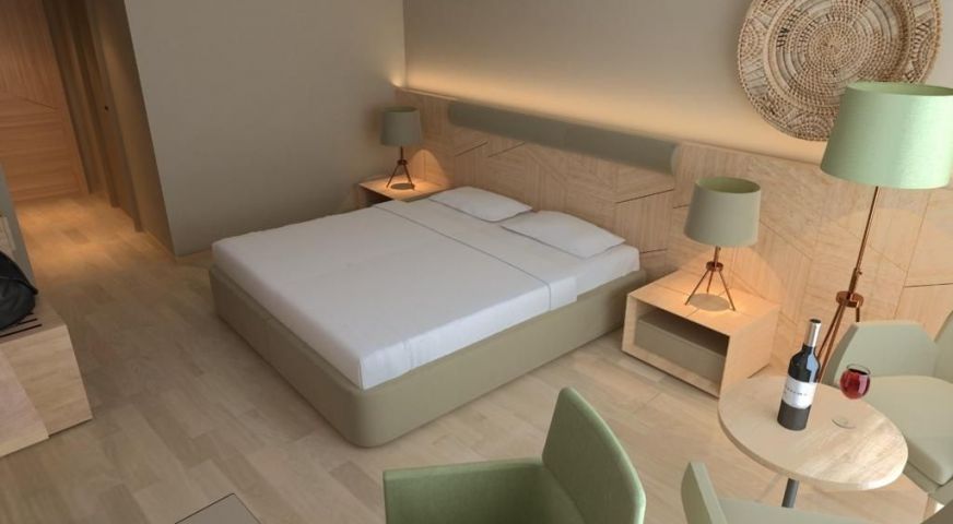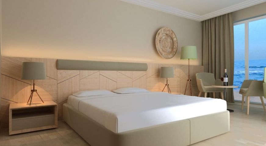 Хотелът разполага с общо 250 стаи, от които 66 стандартни стаи с изглед градина (20-30 m²), 138 стандартни стаи с изглед море (20-30 m²), 7 промо стаи (20-30 m²), 10 джуниор суита (спалня и всекидневна, 60 m²) и 29 фамилни суита (2 спални, 2 бани, 60 m²), разположени в основна сграда. Всички стаи са оборудвани с климатик, телефон, телевизор, баня с душ, сешоар, сет за кафе/чай, мини бар ( eжедневно зареждане с вода и безалкохолни напитки), сейф (безплатно), Wi-Fi, балкон в някои от стаите. Почистване на стаите - всеки ден, смяна на спалното бельо - 2 пъти в седмицата.