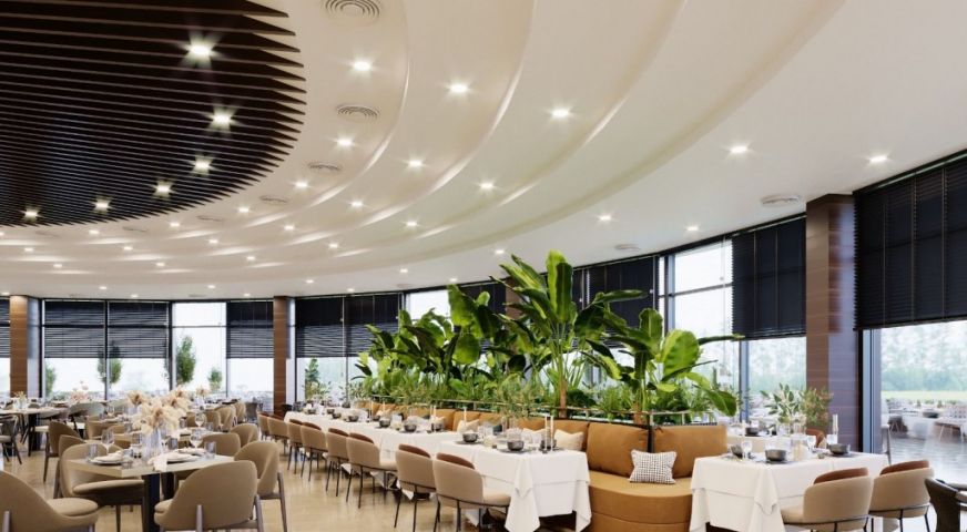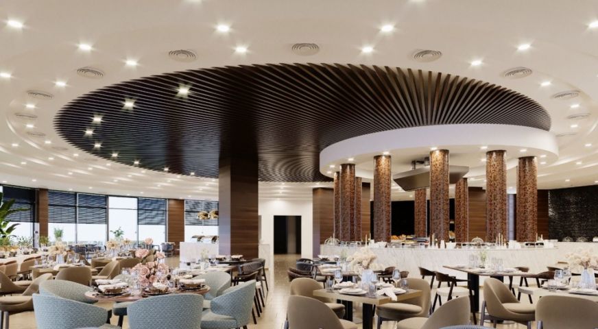 Oсновен ресторант, 2 а-ла-карт ресторантa: рибен и италиански (с предварителна резервация, едно безплатно посещение при мин. 5 нощувки), снек бар, 3 бара, сладкарница, открит басейн, закрит отопляем басейн (в зависимост от сезонните условия), водни пързалки, СПА център, фитнес, конферентна зала, магазини, паркинг.