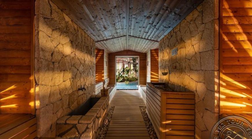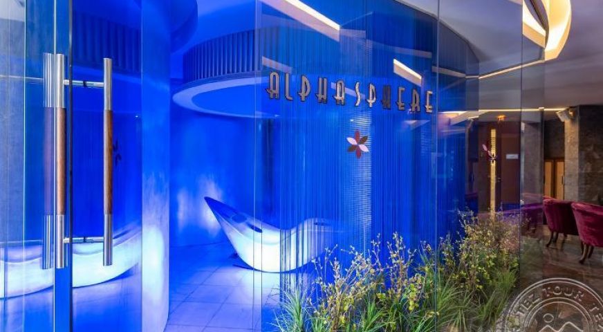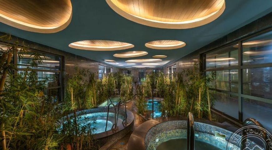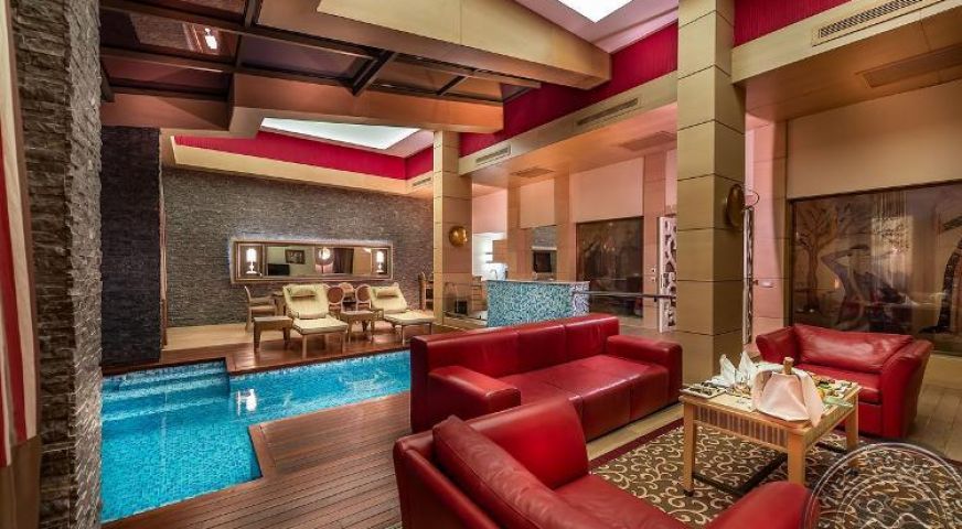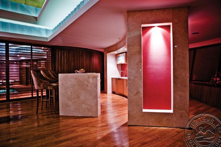 Diamond Suite (1 етаж: гостна със зона за хранене за 6 чов., 3 тераси, хидромасажен душ, сауна, вътрешен басейн с хидромасаж. 2 етаж: 2 спални с врата, 2 бани с хидромасажна вана и душ, един общ балкон. Между етажите има стая за прислуга за един човек, макс. 4+1 чов., 310 м2);1
