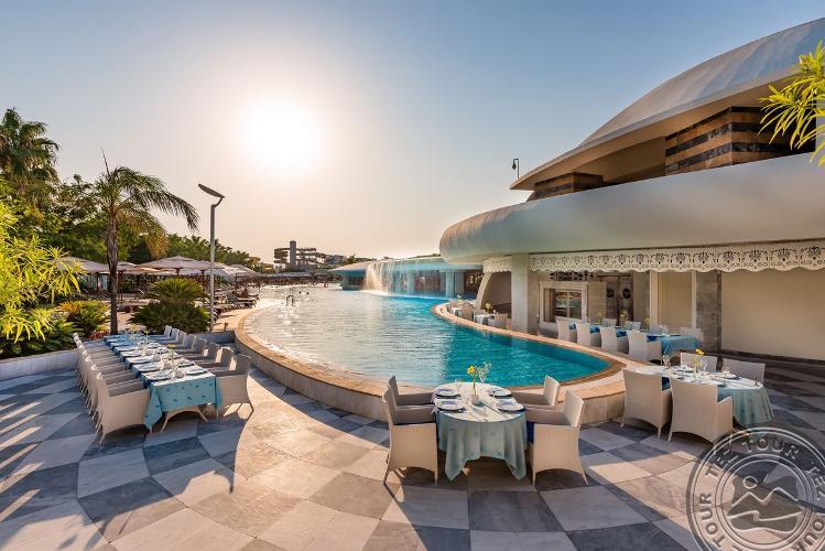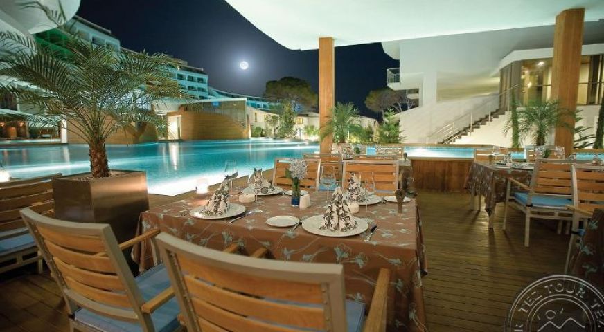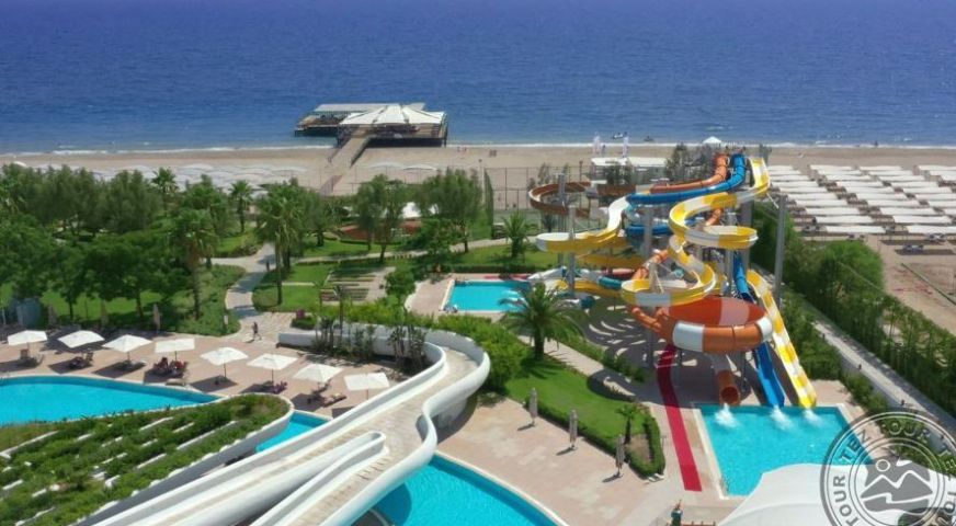 Хотелът е разположен на 35 км от летището, на 45 км от центъра на гр. Анталия, на 2 км от селището Белек, на брега на морето.Построен през 2008 г., обща площ 200 000 м2. Ежегодно се извършват козметични ремонти.Хотелът се състои от основна осеметажна сграда и комплекс от двуетажни Lake Villas.