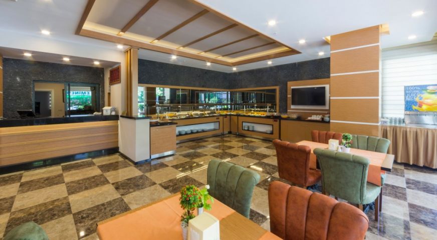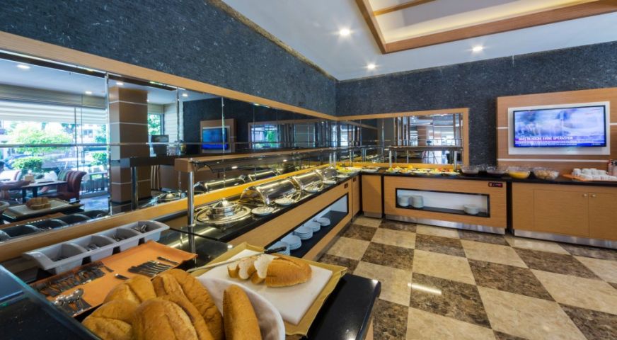 Основен ресторант, три бара, два открити басейна, два детски басейна, дартс и билярд, тенис на маса, безжичен интернет в лоби и в стаите. Плаж:чадъри и шезлонги на градския плаж на Алания срещу допълнително заплащане. Безплатно ползване на чадъри и шезлонги при басейна.