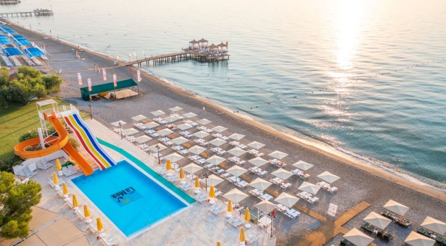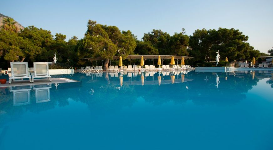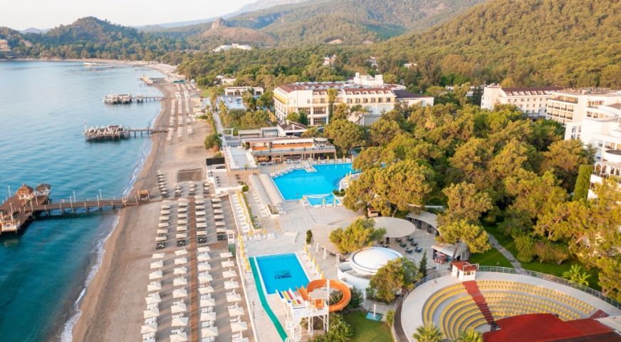 Намира се на 46 км. от летище Анталия, на 36км от центъра ан Анталия и на 6 км. от центъра на Кемер, в селището Гьойнюк, на брега на морето. Построен през 1991 г., с обща площ 34 000 м2, последно реновиран през 2018 г.