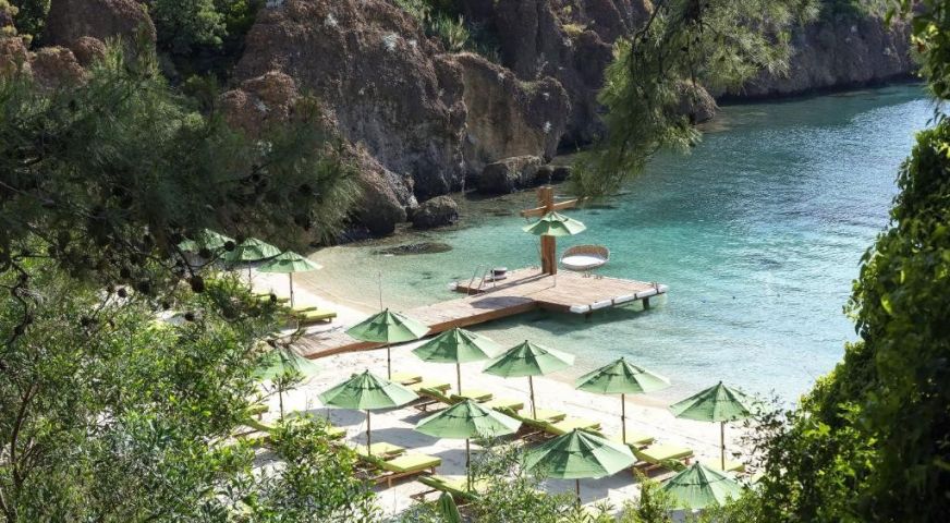 Хотелът е място, където комфортът и природата се сливат. Намира се в живописен залив, на хълм, заобиколен от борова гора и планини. Луксозните стаи са декорирани в съвременен стил, но не приемаме гости с деца под 8 години.