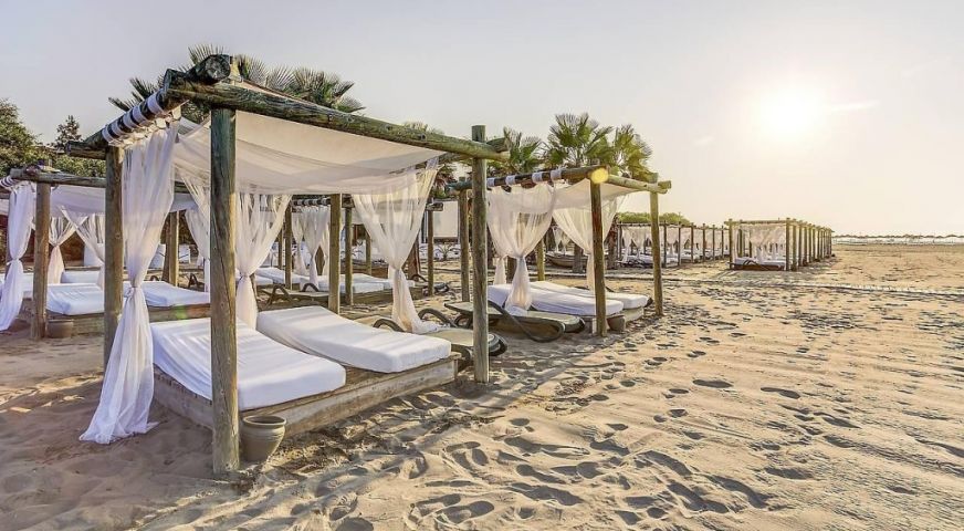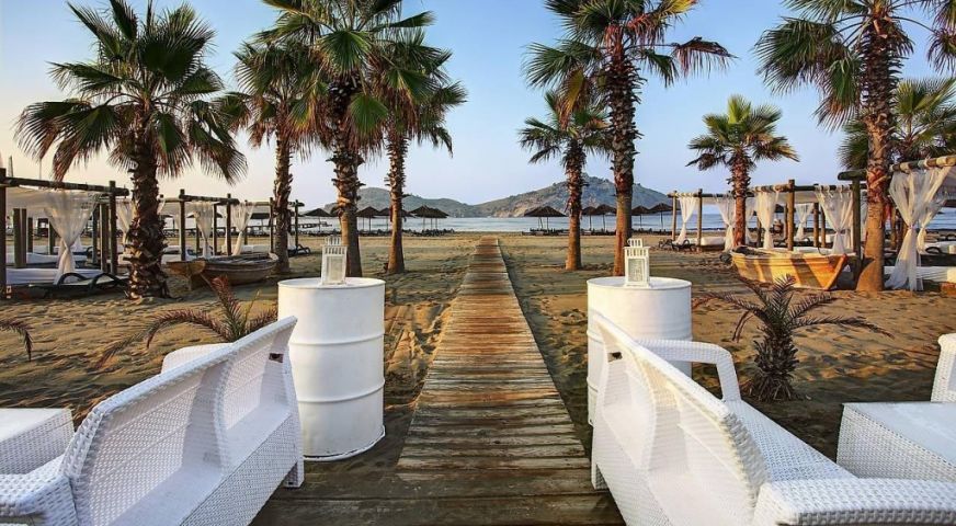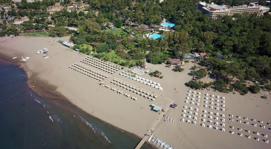 Плаж: Собствен пясъчен плаж на 50 м от хотела (1 брегова линия). Дължина 280 м. Има кей. Плажното оборудване и хавлиите са безплатни.