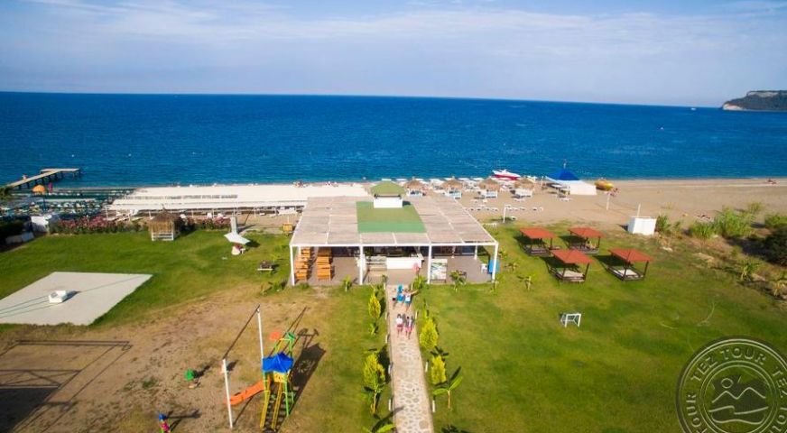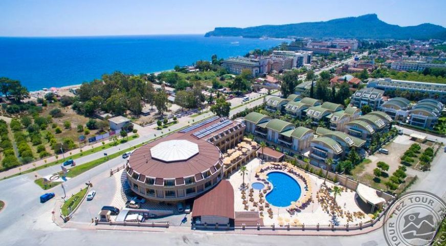 Хотелът е разпложен на 55 км от летището на Анталия, в гр. Кемер, на 150 м от собствения си плаж.Хотелът е построен през 2014 г. и е с обща площ 6000 м2. Състои се от една 4-етажна сграда и пет 1-етажни корпуса, разположени в плажната зона, през пътя от главната сграда: