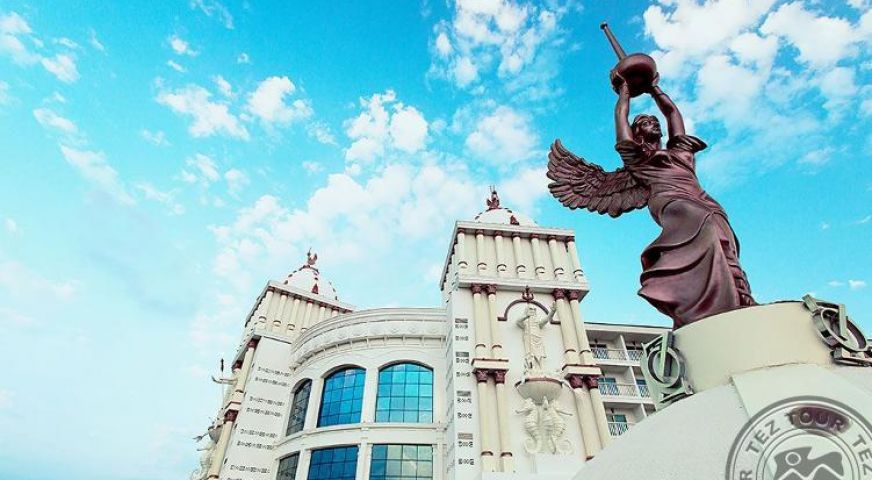 Нов хотел със съвременна архитектура и стилни стаи. Отдалечеността от плажа се компенсира с трансфер и развита инфраструктура за активна почивка.
