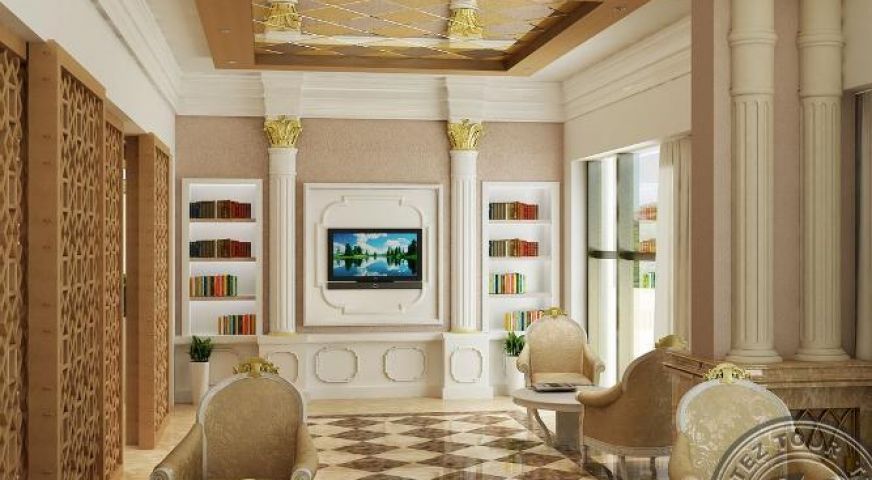 family room (разположени на етажи -1 и -2, с изглед към стената, две спални с врата, макс. 4 човека, 45 м2).