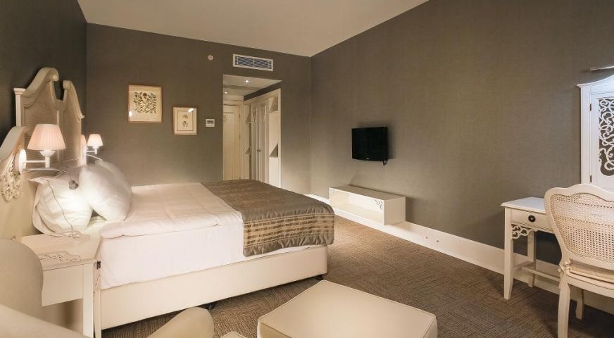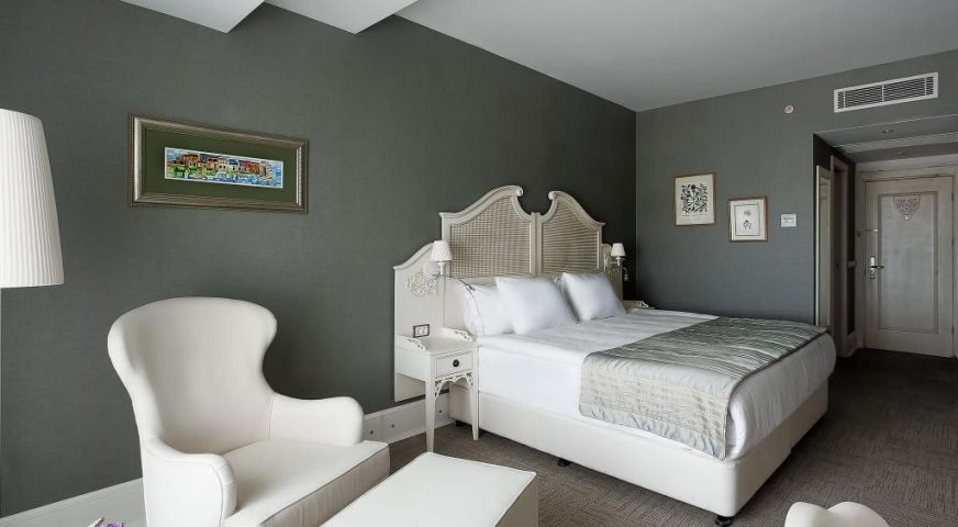 Хотелът разполага със 155 стаи, всички оборудвани с климатик, телевизор, телефон, баня с душ, сешоар, мини бар/платен/, сейф/платен/. Почти всички стаи са с балкон и с изглед море. Почистване на стаите - всеки ден, смяна на спалното бельо и кърпите - 2 пъти в седмицата.