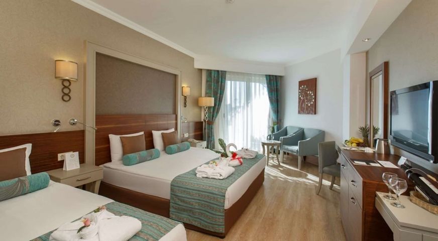 Хотелът разполага с основен ресторант, 3 а-ла-карт ресторанта (османски, италиански и мексикански, със заплащане), 4 бара, сладкарница, плувен басейн, детски басейн, вътрешен басейн, аквапарк, релакс басейн, СПА център, фитнес, турска баня, ТВ зала, WI-FI, анимация, дискотека, кино за деца, конферентна зала, пакринг.
