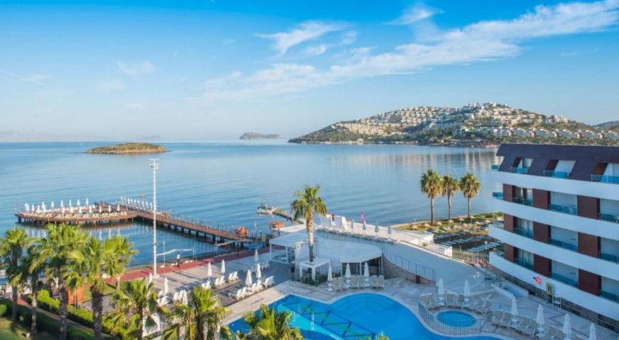 Azure By Yelken 5* се намира в региона на град Тургутрейс, на 55 км от Летище Бодрум. Той привлича вниманието на своите гости най-вече със своето местоположение. Хотелът има собствена плажна ивица с дължина от 330 метра, която се намира само на 1 минути от него, а общата площ, на която е разположен хотела е от около 20 хил. кв.м.