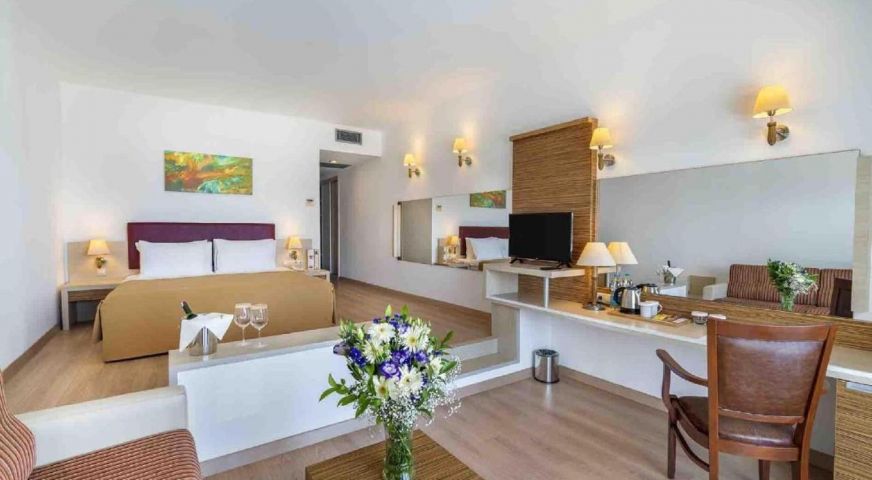 - Супериор стаи с площ от 45-50 кв.м със спалня или 2 единични легла, допълнително легло, баня, с възможност за изглед море или към градината и балкон. Максималният капацитет за настаняване е до 4-ма възрастни.
