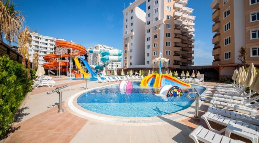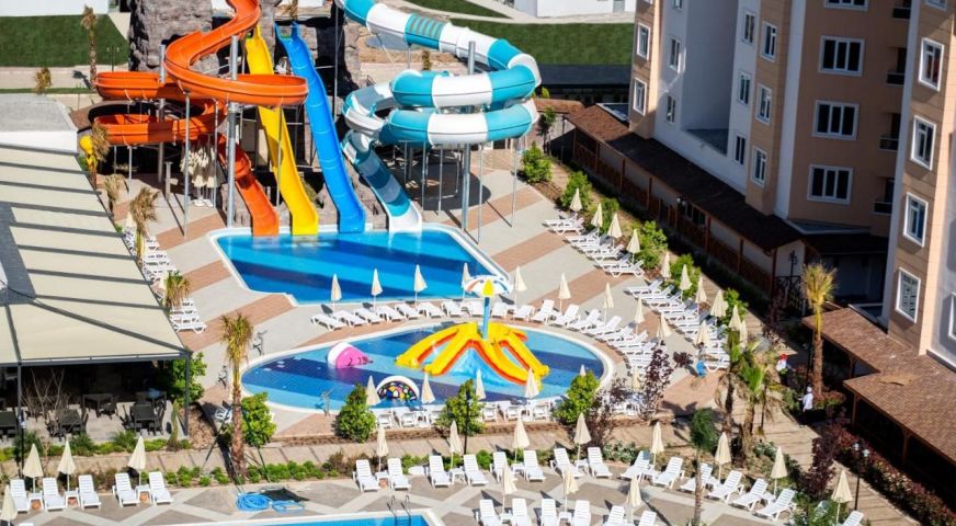 Детско меню, детска площадка, мини клуб (4-12 г.), детски басейн, водни пързалки, детско кино, детска дискотека, детски клуб на плажа, анимация.