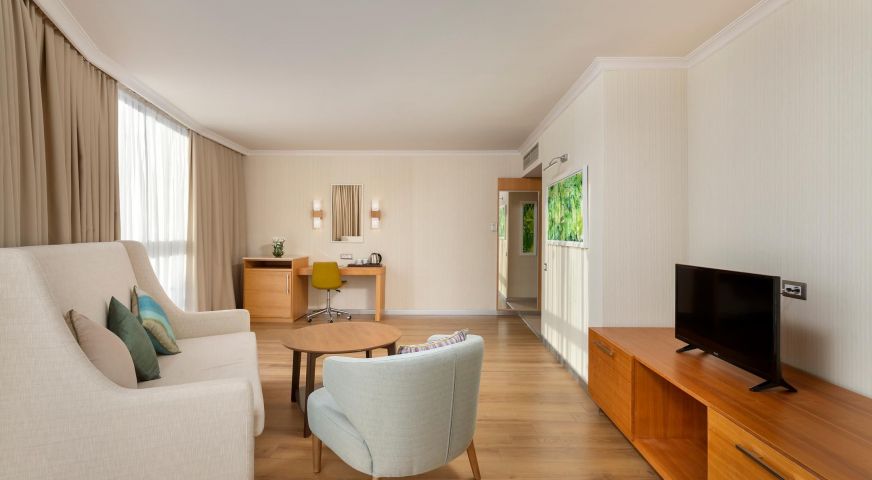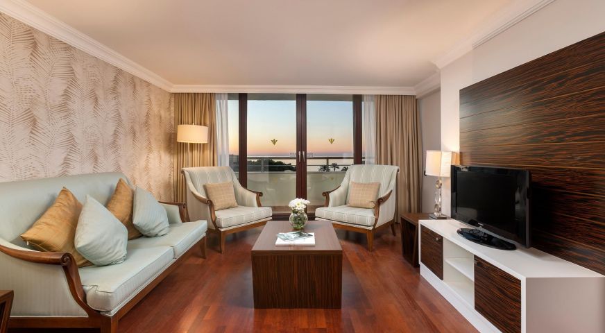Хотелът разполага с общо 360 стаи, от които: 182 Standard Garden View Room (28 m2), 44 Standard Garden View Room without Balcony (31 m2), 6 Family Terrace Suite with Jacuzzi (63 m2), 2 Jacuzzi Suite (58 m2), 6 Duplex Suite (60 m2), 15 Family Room (61 m2), 58 Comfort Club Room (28 m2), 3 Superior Family Suite (90 m2), 13 Club Family Room (44 m2), 8 Superior Room (58 m2), 10 Orient Suite with Jacuzzi (92 m2), 9 Sultan Suite with Jacuzzi (86 m2), 3 Residence Villa (178 m2).