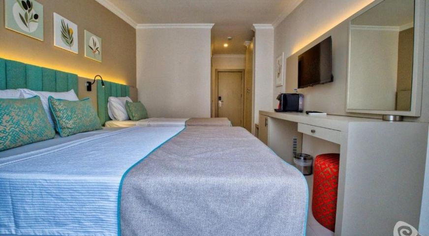 Безплатни дейности - Аеробика, Различни шоуа, кърпи за басейна и плажа, Слънчеви чадъри, Възглавници, Шезлонги, Тенис на маса, Плажен волейбол, Сауна, Турска баня, Безжичен интернет, Сейф (в стаите), 1 а ла карт ресторант за престой над 6 нощувки