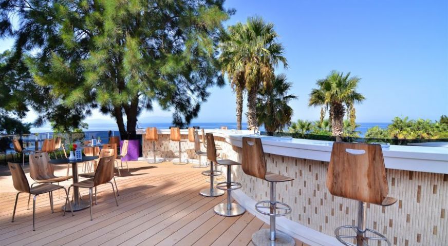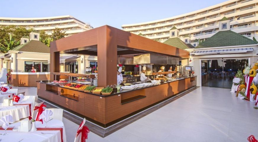 Хотелът предлага основен ресторант, 3 ресторанта a la carte (рибен, италиански, турски, с предварително записване, за 1 седмица престой посещението на един ресторант е безплатно), 6 бара, 2 открити басейна, лекар, фризьор, пералня, магазини