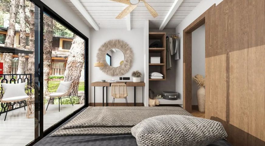 Стаите са елегантно обзаведени и оборудвани с всички удобства, необходими за релаксиращ престой. Разположени са във вили и хотелска сграда. Всяка стая е оборудвана с климатик, тераса или веранда, минибар, телефон, телевизор, безжичен интернет, сейф, комплект за приготвяне на чай и кафе, баня с душ или вана, сешоар и тоалетни принадлежности. Хотелът разполага с няколко типа стаи.