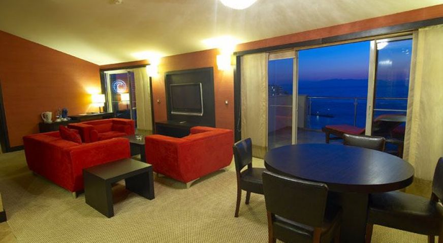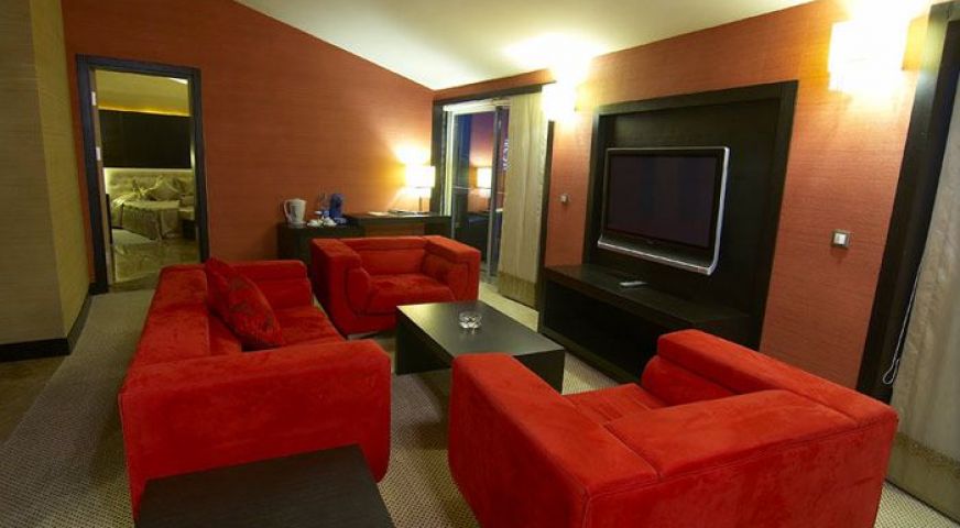 баня с вана, джакузи, централен климатик, телефон, телевизор, мини бар (срещу заплащане), сейф в стаите (срещу заплащане), room service 24 часа (срещу заплащане), сешоар, балкон, почистване на стаите - всеки ден, смяна на бельото - 3 пъти в седмицата.