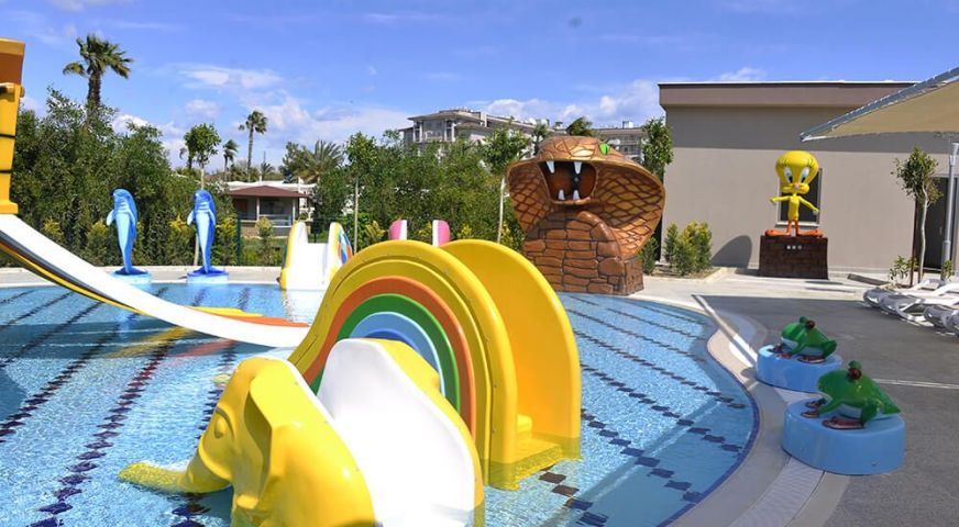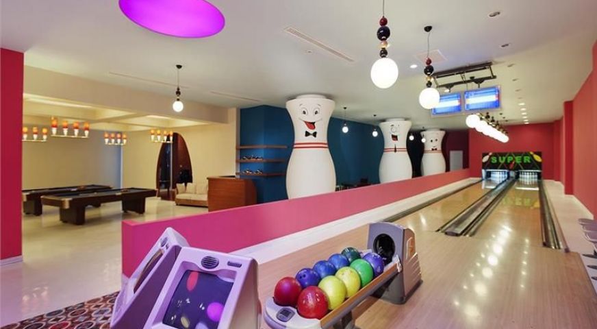 Външен басейн, джакузи, детски басейн, басейн с водни пързалки, вътрешен басейн, анимация, детски клуб, тенис на корт, болулинг, билярд, игрална зала, дартс, дискотека, лунапарк за деца от 3 до 14 г. , СПА и уелнес център.