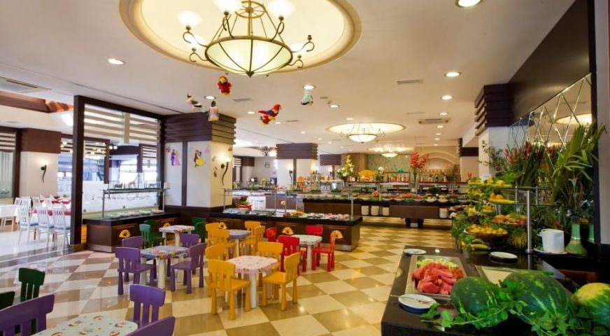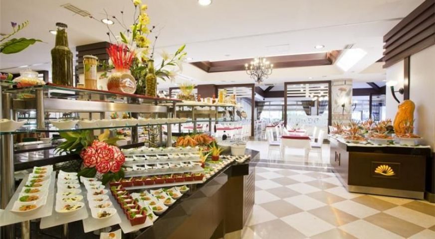 Ол инклузив (от 07:00 - 10:00) от бюфет. Безалкохолни напитки (10:00 - 00:00), кафе и чай (10:00 - 00:00), сладкиши и сладкиши (11:00 - 22:00), малки закуски (11:00 - 17:00), бира (10:00 - 00:00), вино (10:00 - 00:00), местни алкохолни напитки (10:00 - 00:00), избрани вносни алкохолни напитки (10:00 - 00:00), късна закуска (10:00 - 11:00) и среднощни закуски (23:00 - 01:00).