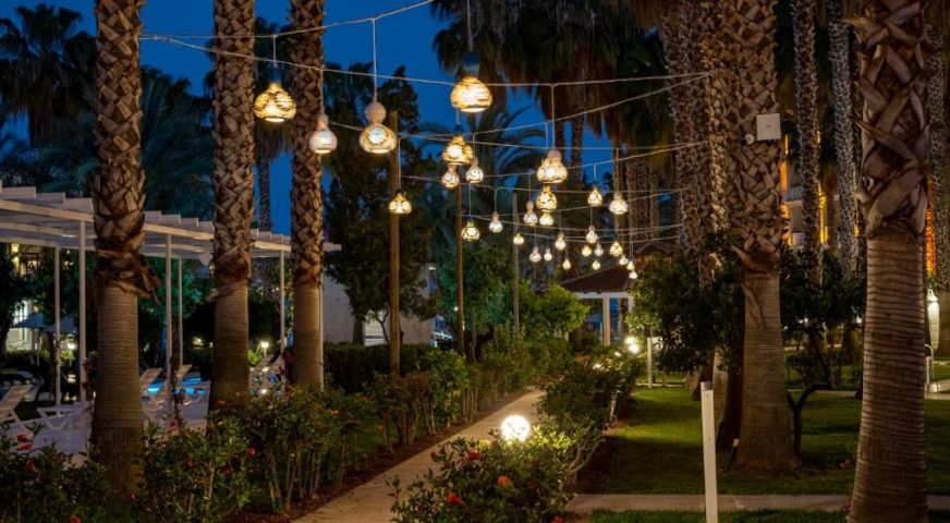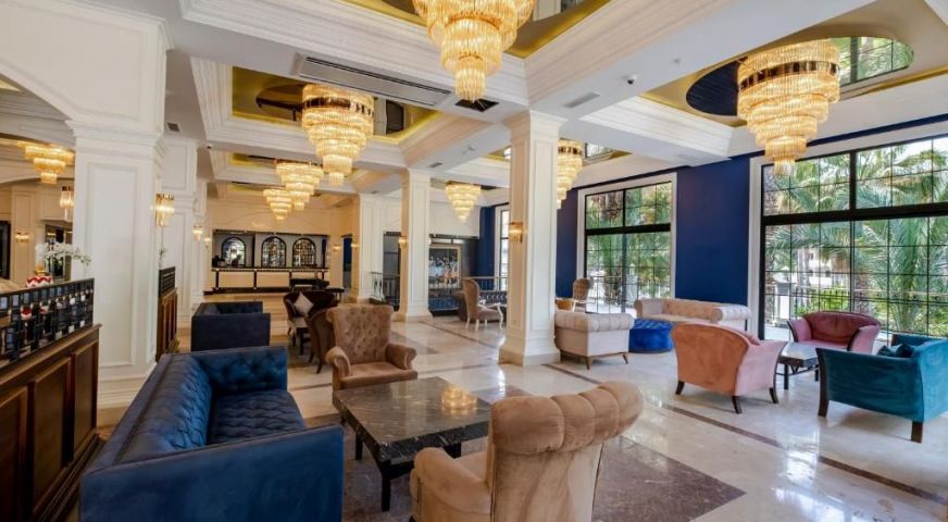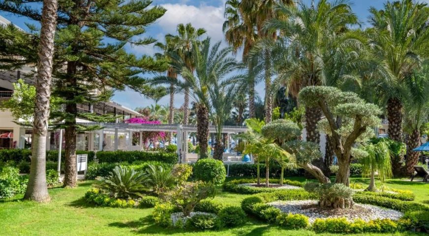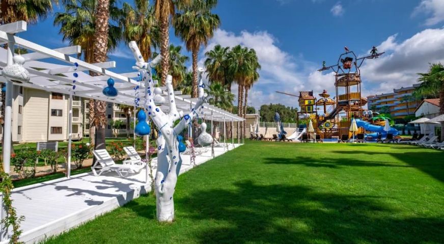 Основен ресторант, 7 а - ла - карт ресторанта, които се заплащат по 7 евро на човек. Хотела разполага с 4 бара, 11 открити басейна и един закрит басейн, 7 детски басейна, аквапарк, 5 водни пързалки, WI – FI и портоклаова гора. За децата: детски кът, детска дискотека, аквапак, детски басейни, игрална зала, бебешки кът, аниматори, детски колички, външен кът за игра, анимация. Безплатни услуги: Сауна, турска баня, фитнес, тенис на маса, аеробика, водна гимнастика, баскетбол, плажен волейбол, дартс, анимация, кнаго джъмп, палжен волейбол, мини футбол. Дискотека. Платени услуги: Пейнтбол, карате, масаж, козметични процедури, рум сервиз.