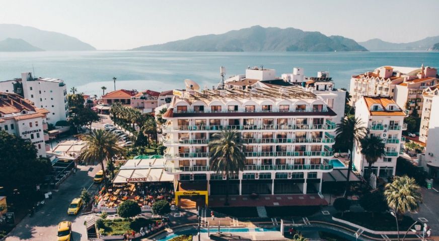 Разположение: На 90 км от летище Даламан, на 500 м от центъра на Мармарис, на 50 м от градския плаж.