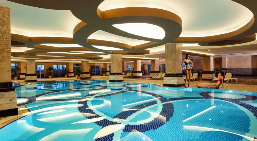 На разположение на гостите на хотела са открит басейн, закрит басейн, 6 водни пързалки, лекарски кабинет, SPA център, фризьорски салон, магазини, пералня, химическо чистене. Безплатни услуги: турска баня, сауна, фитнес зала, аеробика, водна аеробика, волейбол на плажа, мини футбол (на плажа), тенис на маса, дартс, боча, стрелба с пневматично оръжие, анимационна програма, музика на живо (3 пъти седмично), дискотека, безжичен интернет (в лоби). Платени услуги: масаж, боулинг (2 писти), билярд, игрални автомати, интернет кафе, водни спортове