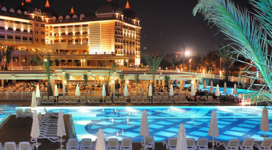 За децата в хотел Royal Alhambra Palace 5*, Анталия: детски бюфет, детски басейн, 3 детски водни пързалки, детска площадка, мини клуб (4–12 год.), лунапарк (безплатно), детегледачка (платено)