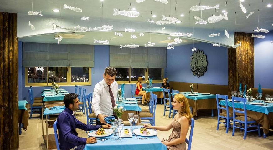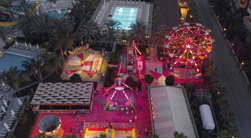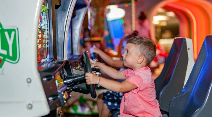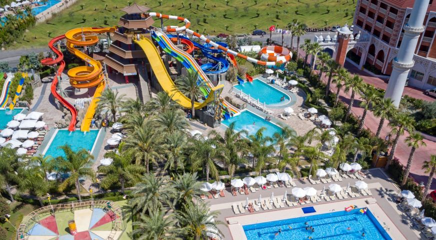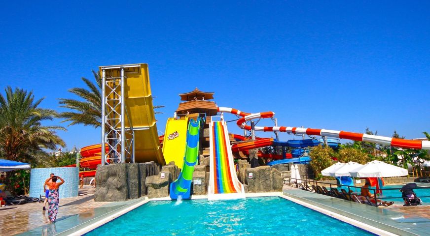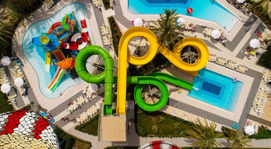 За децата: Детско меню, детски площадки, мини клуб (4-12 г.), 2 детски басейна, водни пързалки, мини дискотека, анимация, лунапарк, зоопарк.