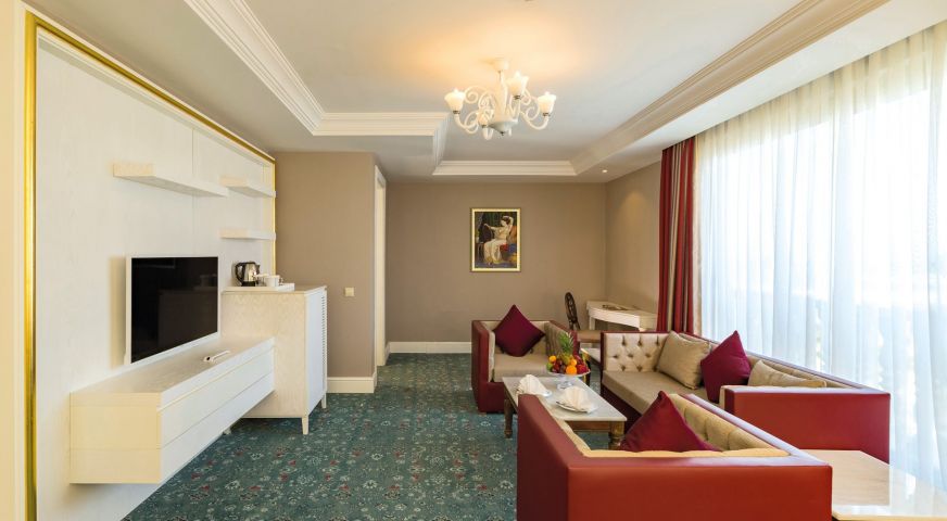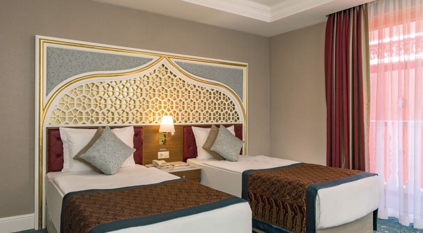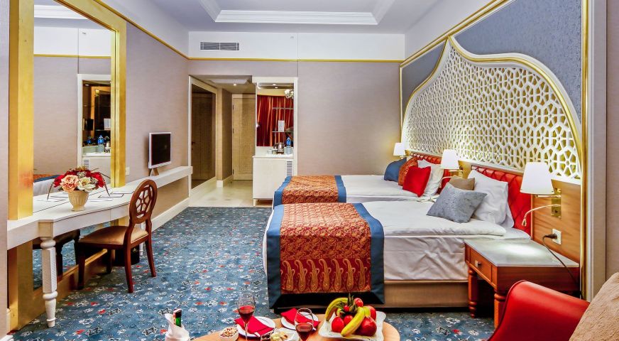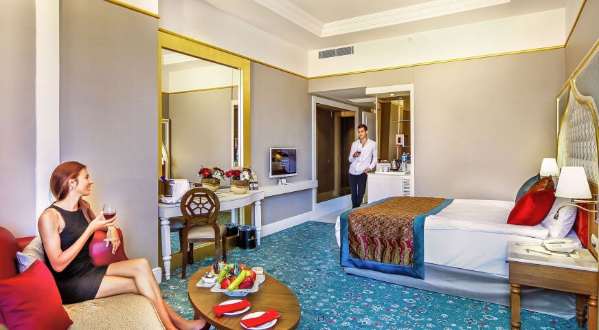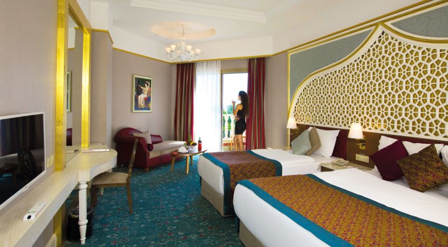 Хотелът разполага с общо 450 стаи, от които 356 стандартни стаи и 68 фамилни стаи. Всички стаи са оборудвани с: климатик, сателитна телевизия, телефон, баня с вана, сешоар, минибар (платено), сейф (безплатно), балкон. Почистване на стаите и смяна на кърпите – всеки ден, смяна на бельото – 2 пъти в седмицата.