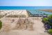 Собствен, пясъчен. Чадъри и шезлонги на плажа и при басейна – безплатно, плажни кърпи – безплатно, смяна на плажната кърпа – срещу заплащане.