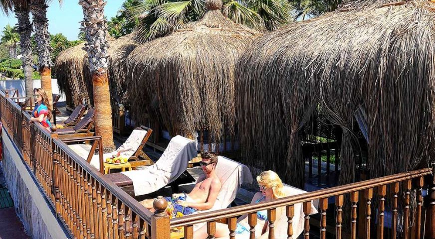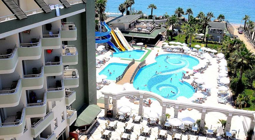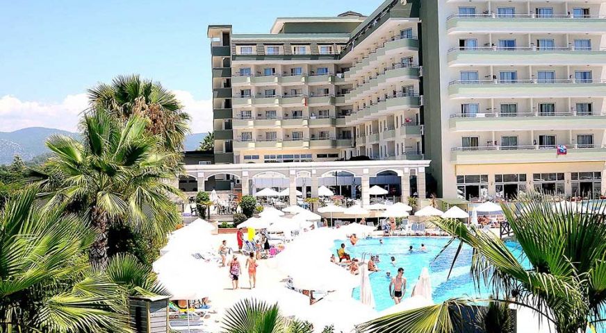 на 85 км от летището на г. Анталия, на 35 км от г. Алания и на 10 км от селището Авсалар, на брега на морето
