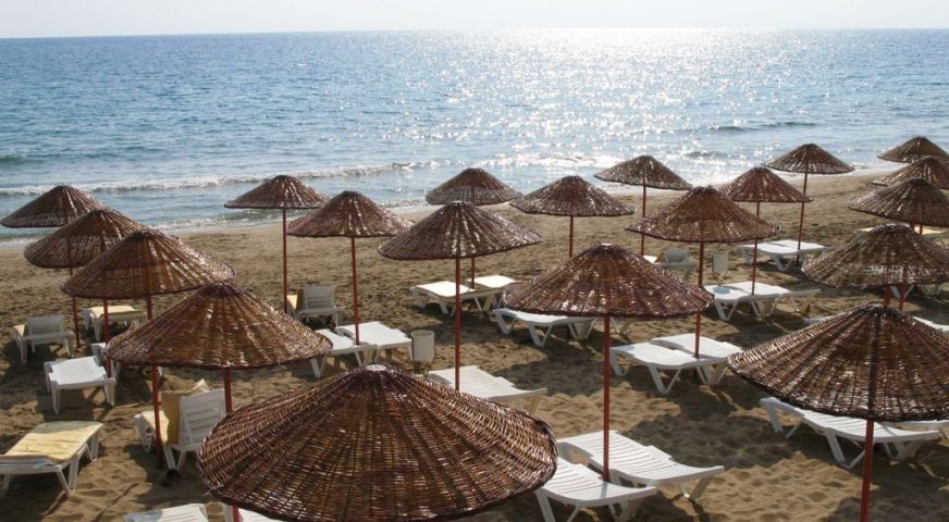 Собствен, пясъчен. Чадъри, шезлонги и матраци на плажа и при басейна – безплатно. Плажни кърпи – безплатно.