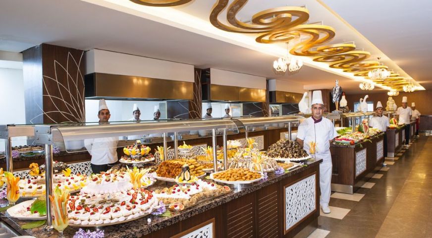основен ресторант, 2 а la carte ресторанта (рибен, турски, 1 безплатно посещение по време на престоя, след предварително записване), 5 бара, открит басейн, закрит басейн, водна пързалка, лекарски кабинет, фризьорски салон, магазини, пералня, химическо чистене, конферентна зала (за 300 чов.)