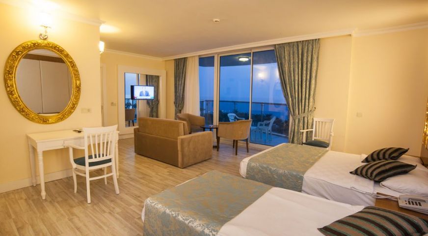 Хотелът е разположен на 90 км. от летището на Анталия, на 35 км от Алания. На брега на морето.