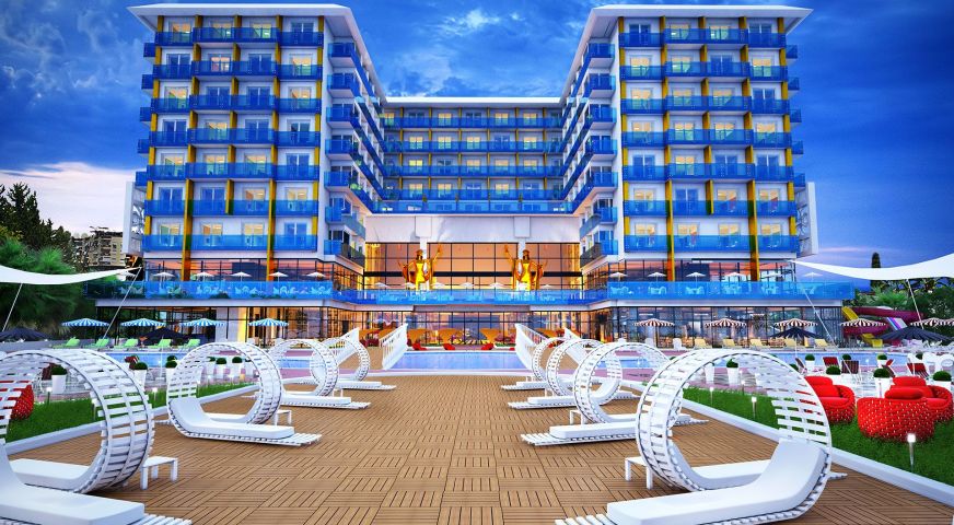 Хотелът се намира на 98 км. от летище Анталия, на 115 км. от центъра на Анталия, в района на Алания, на брега на морето, със собствен пясъчен плаж. Построен през 2015 г.