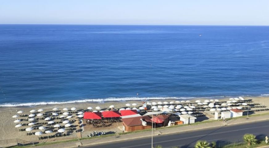 Собствен, пясък/чакъл. Бар на плажа: безплатно. При басейна: чадъри, шезлонги, – безплатно. Матраци – няма. На плажа : чадъри, шезлонги, матраци – безплатно. Плажни кърпи: безплатно.