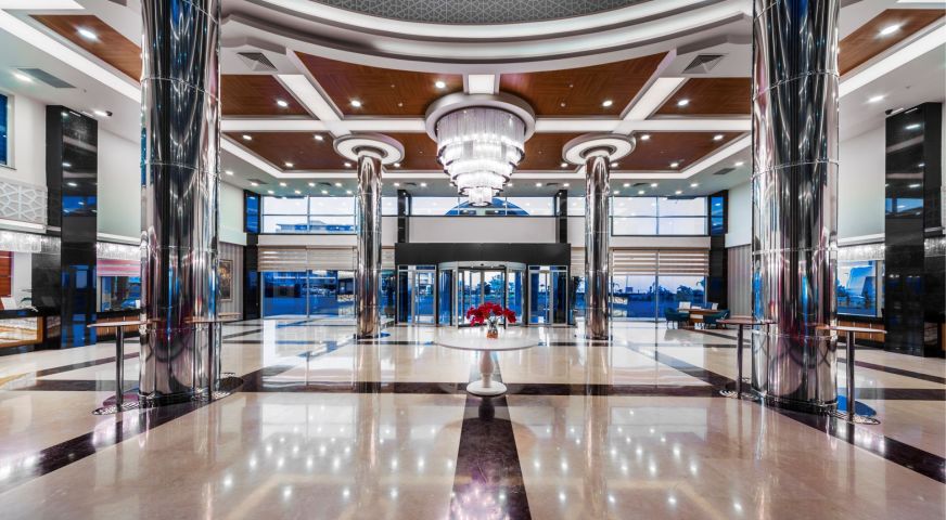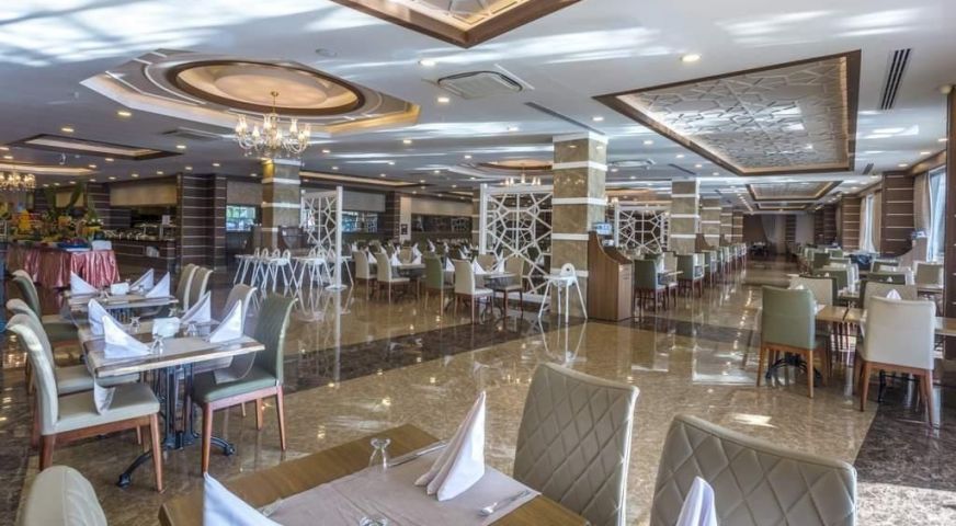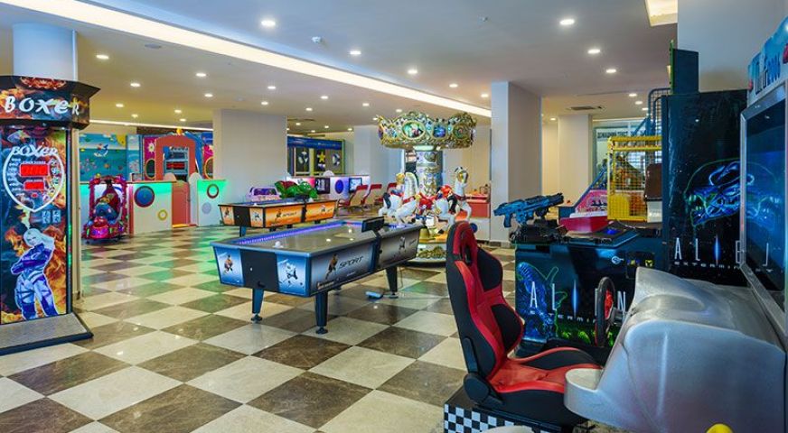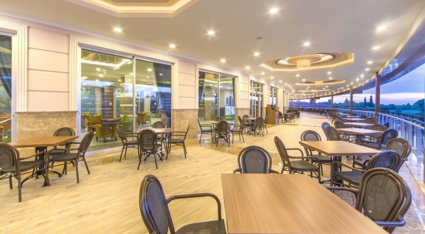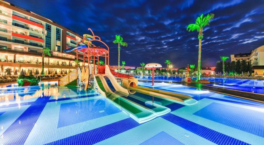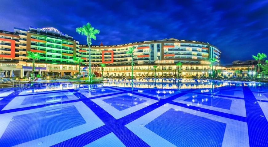 Основен реасторант, 2 а-ла-карт ресторанта (рибен, турски - с предварителна резервация), сладкарница, гьозлеме пекарна, 7 бара, дискотека (входа е платен, консумация на напитки - безплатно), 7 открити и 1 закрит басейн, 2 аква парка (общо 7 пързалки), 3 конферентни зали, паркинг.