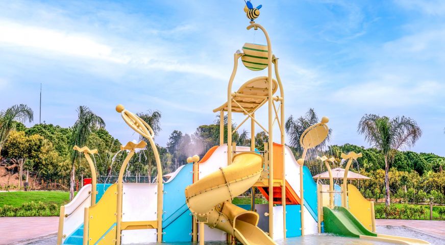 За децата: 2 открити и 1 закрит (отопляем в периодите 21.03-30.04 и 01.10-31.10) детски басейна,3 водни пързалки за деца, воден парк, мини клуб (3-9 г), детска анимация.