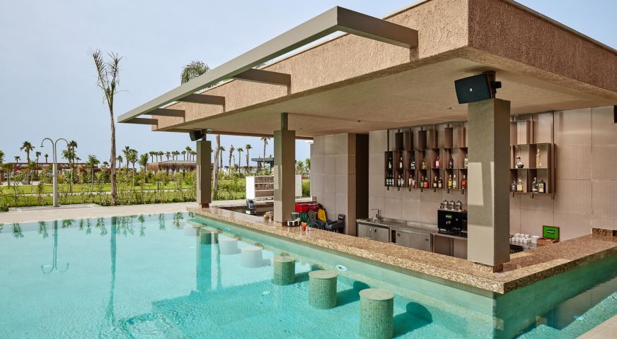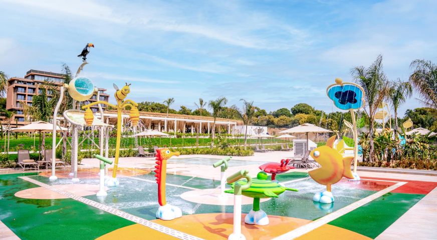 Основен ресторант (тематични вечери 7 дни в седмицата, диетичен и веган бюфет), 5 а-ла-карт ресторанта (италиански, с егейска кухня, турски - 1 безплатно посещение на 1 от ресторантите при минимум 7 нощувки, с предварителна резервация; интернационален и с кухня от далечния изток – срещу заплащане, с предварителна резервация), 1 снек ресторант, бистро 24/7, сладкарница, кафене, 11 бара (един от които 24/7), 11 открити и 1 закрит басейн (отопляем в периодите 21.03-30.04 и 01.10-31.10), аквапарк с 5 водни пързалки за възрастни и 3 за деца, СПА център, магазини, 3 конферентни зали.