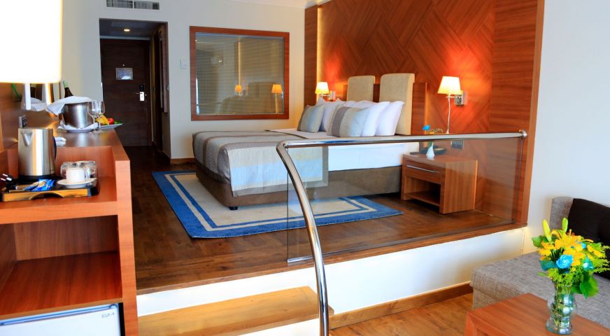 Стаите разполагат с вана (hotel), душ (bungalow), сешоар, централен климатик, телевизор, телефон, мини бар (безалкохолни напитки – зареждане всеки ден, безплатно), сейф (в стаята, безплатно), на земята - мокет, балкон (hotel), балкон/тераса (bungalow), почистване на стаята – всеки ден, смяна на спалното бельо – 3 пъти седмично, смяна на кърпите – 3 пъти седмично