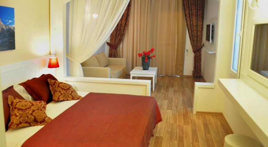 баня с душ/ вана, сешоар, балкон, сателитна телевизия, музикален канал, радио, телефон, климатик, сейф(допълнително заплащане), мини бар