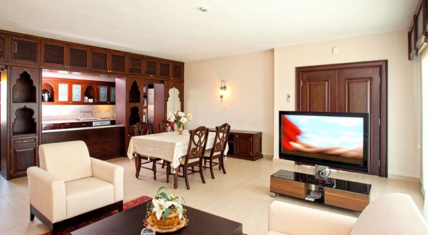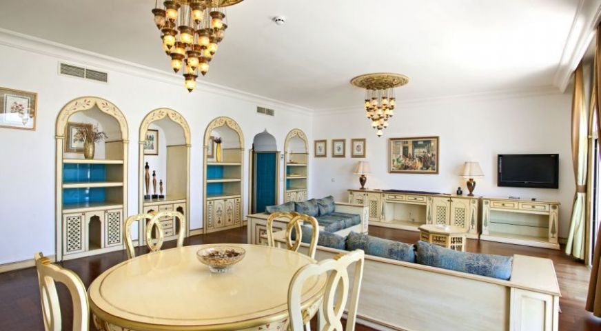 Хотелът разполага с основен ресторант, 2 ресторанта а la carte (османски, средиземноморски, по заявка, посещението на един от ресторантите веднъж по време на престоя - безплатно), 5 бара, открит басейн, закрит басейн (с подгряване), лекарски кабинет, SPA-център, фризьорски салон, магазини, пералня, химическо чистене, конферентна зала (за 230 чов.)