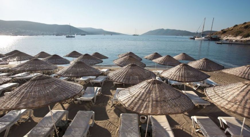 Плажът е собствен, пясъчен. Бар на плажа - безплатно. На басейна и на плажа: чадъри, шезлонги, матраци – безплатно. Плажни кърпи: безплатно.