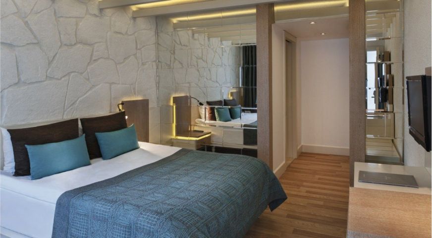 Хотелът състои от една 7-етажна сграда (64% от стаите с изглед към морето, но без балкон): 118 standard room (макс. 3 чов.); 7 двустайни suite (2 спални с врата, бяня, макс. 4 чов.). Стаите на хотела са с климатик, телевизор, телефон, мини бар (платено), сейф (безплатно), баня с душ, сешоар, балкон. Почистване на стаите - всеки ден, смяна на спалното бельо и кърпите - 3 пъти в седмицата.