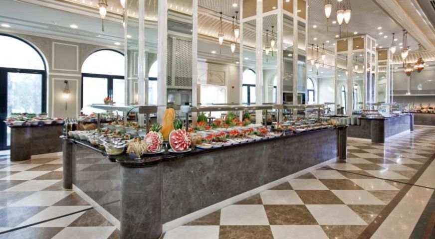 Основен ресторант с All Inclusive система - отворен бюфет. 3 а-ла-карт ресторанти, 5 бара, сладкарница.