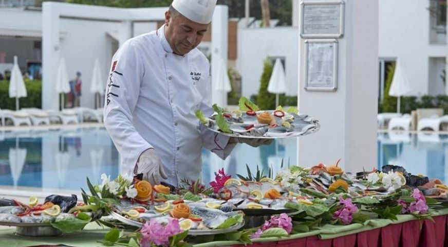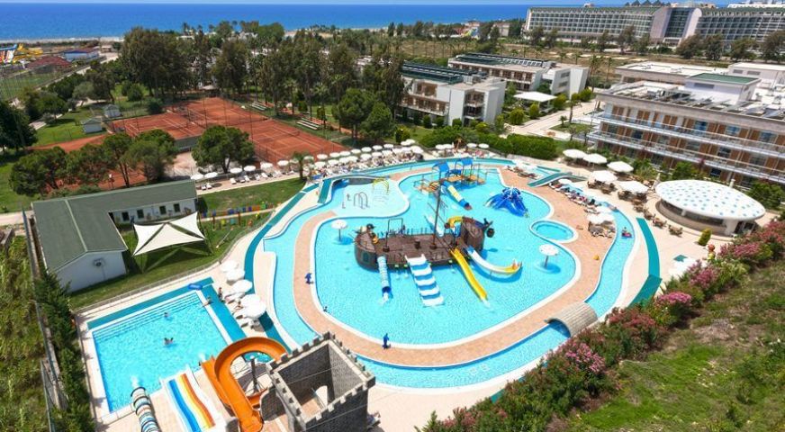 Основен ресторант, сладкарница, гьозлеме пекарна, 6 бара, павилион за сладолед, няколко открити басейна, аквапарк, мини клуб, SPA център с турска баня и сауна, фитнес зала, анимационна програма, 2 волейболни игрища, 4 тенис корта с червена глина, дискотека, магазини.